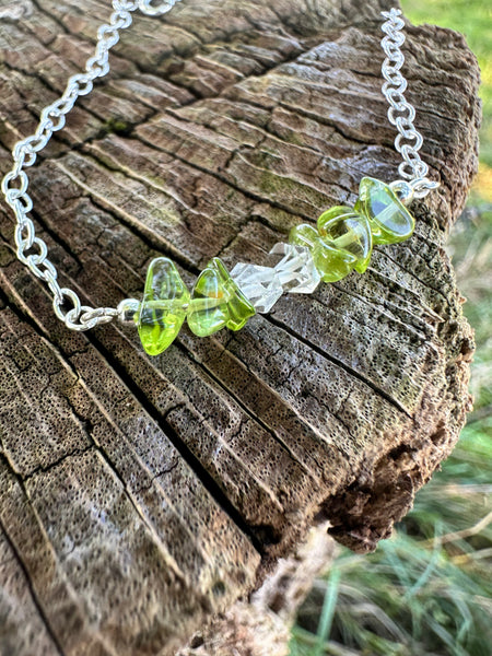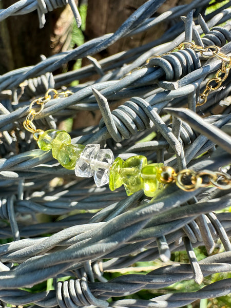 „Verdant Glow gold plated“ 925er silber vergoldetes Armband mit Peridot Splittern und Bergkristall