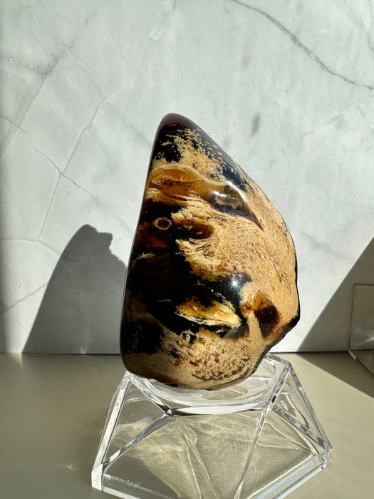 Zebra Bernstein polierte Freiform aus Indonesien C59