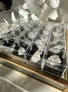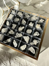 Bergkristall Stufe in Box, es wird eine Stufe intuitiv ausgesucht.