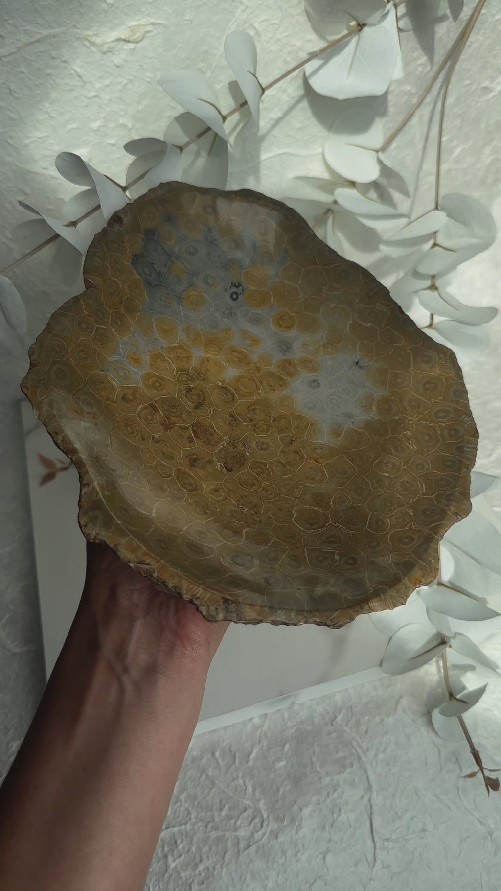 Versteinerte Koralle Schale, 24,5cm x 21cm. Gewicht 1265g